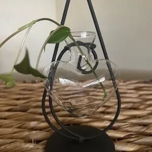 Cat Shaped Metal Plant Holder with Glass Vase ✨