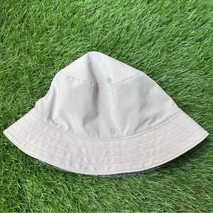 Stay stylish and protected with this versatile Lululemon reversible bucket hat. Features a modern gray printed side with subtle Lululemon logo detailing, and a clean solid beige side for a more classic look. Perfect for workouts, casual outings, or travel – lightweight, breathable, and easy to pack.