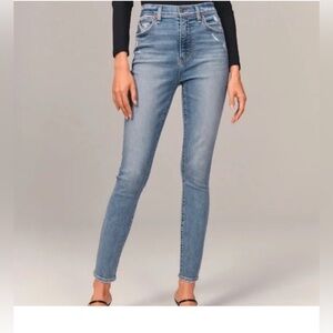 Abercrombie & Fitch Supper Skinny Ankle High Rise Women’s Blue Jeans Size 28/6R. Front and back pockets. Front zipper and two button closure. Criss-cross waist. Light indigo wash. Distressed details. 93% cotton 6% polyester 1% elastane. NWT.