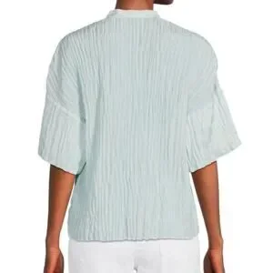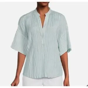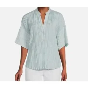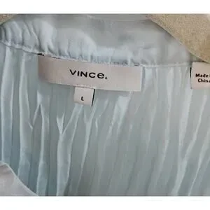 $325 VINCE Crushed Silk Top Blouse | Womens Size L, Sky Blue NEW!