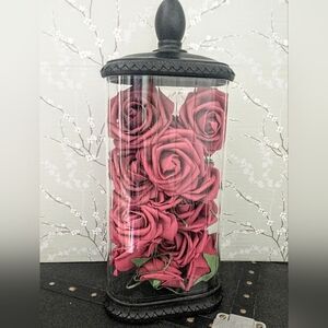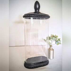 Vintage Glass Apothocary Style Jar - Black Lid & Base - Oval
