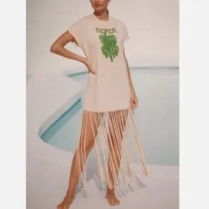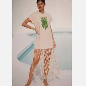 Farm Rio x Anthropologie Short-Sleeve Maxi Dress Fringe T-shirt Bananas L NWT