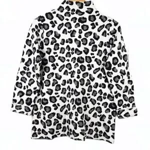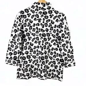 Chic Tahari fall or winter top with striking black and white pattern. Ideal for a modern look.snow leopard print. Viscose blend. Super soft. High neck
