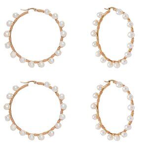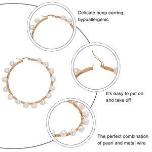 NWOT Extra Large wire wrapped Natural Pearls On Stainless Steel Hoops
