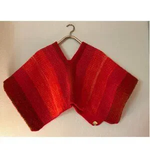 Vintage hand-woven wool Andean short poncho in Red/Orange