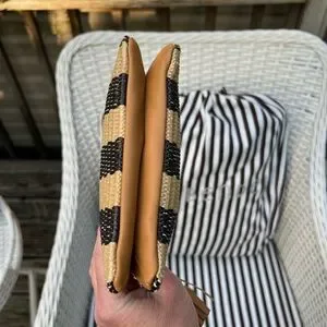 Henri Bendel Dark Brown and Tan Raffia Clutch/Wristlet
