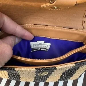 Signature Style: Instantly recognizable Henri Bendel brown and white (or in this case, brown and beige) woven exterior, a hallmark of the brand's iconic aesthetic.