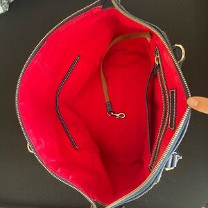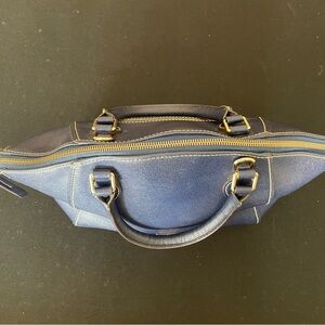 Dooney & Bourke Sydney Saffiano Leather Navy Satchel with Gold Accents