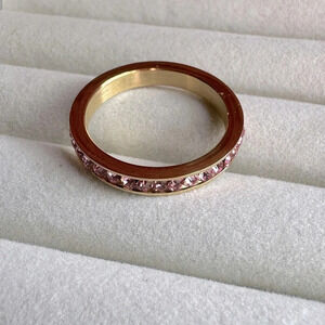 This listing is for one pink tourmaline cz eternity band ring only! The other jewelry is shown for styling purposes only! Please check out my closet for pieces! I have these rings in multiple colors and bracelets to go with as well!