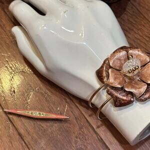 Add a touch of elegance to your collection with this exquisite pin brooch by renowned French designer Catherine Popesco. This handcrafted piece features a stunning combination of pink and orange enamel, accented with sparkling marcasite stones.
