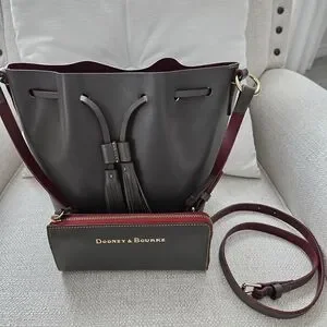Dooney & Bourke Grey and Burgundy Women's Bag And Wallet