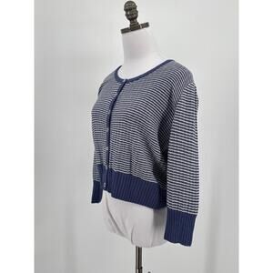 St. John Sport Blue White Striped 3/4 Sleeve Cardigan Sweater Sz Ppit to pit 21"length 21"