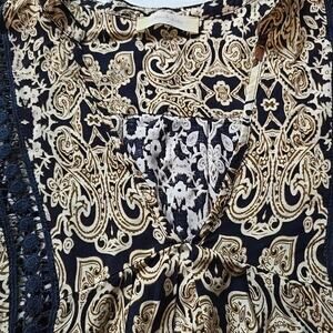 Alter'd State Blue Black Brown Tan Boho Mini Skater Dress Size Small