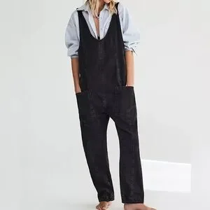 Free People We The Free High Roller Jumpsuit in Mineral Black