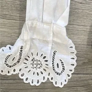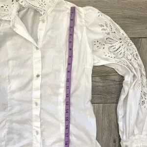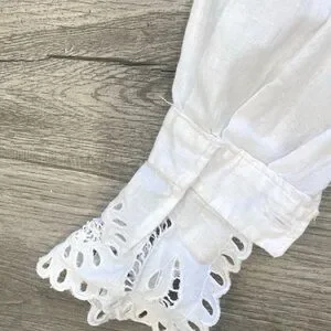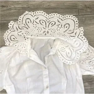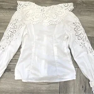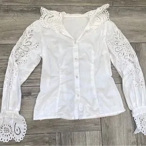 Women's Vintage White Long Sleeve Blouse Cotton Doilie Neck Sleeves Cuffs UNIQUE