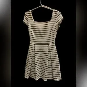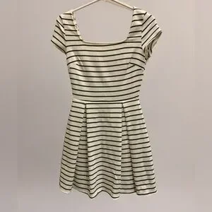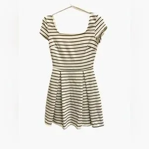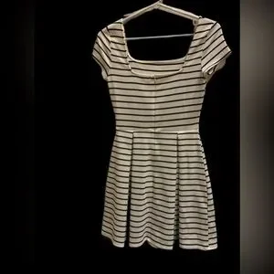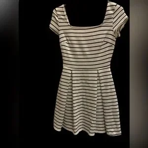 Soprano White & Black Striped Fit & Flare Dress - XS - Zipper Back - NWT