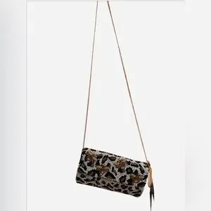 New with Tag, Viral Beaded Leopard Detail With Bee’s Embellishment Chain Crossbody Bag