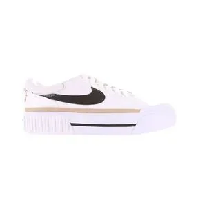 Stylish Nike sneakers for women. Features a sleek white design with black accents. Comfortable and trendy.
