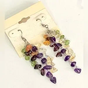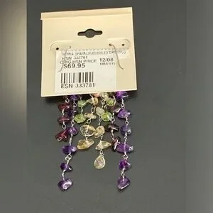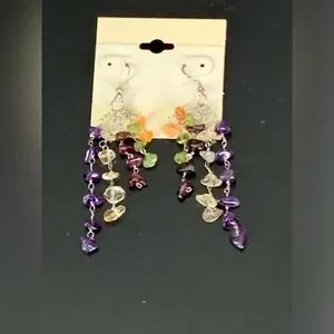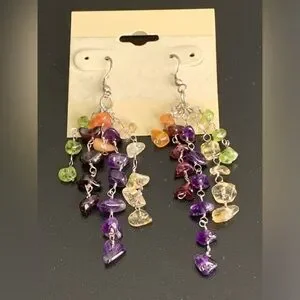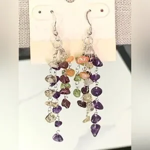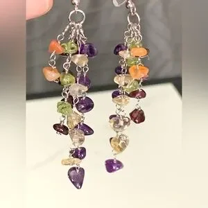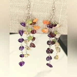 Pretty 925 Sterling Silver Multi Color Gemstone Dangling Earrings