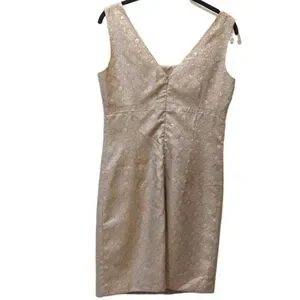 IDEOLOGY Gold Metallic Brocade Empire Waist Sleeveless Sheath Dress (6)