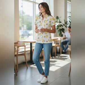 Brighten your wardrobe with this stylish lemon print shirt. Perfect for casual outings and vacation fun!