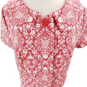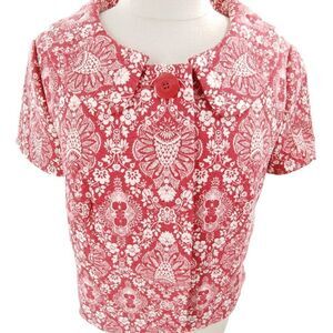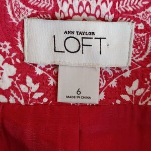 Loft red & white cotton matelasse short sleeve jacket w/ peter pan collar size 6