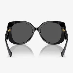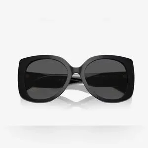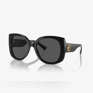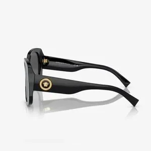 Sophisticated Versace sunglasses with bold black frames. Features a stylish gold accent on the sides. Perfect for a modern look. Versace Black Sunglasses Full inclusion NWT