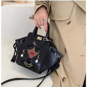 Vintage Style Square Shaped Handbag In Black.