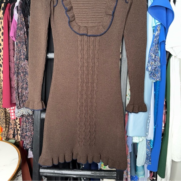 Fendi Wool Blend Ruffle Trim Knit Mini Dress in Chocolate Brown