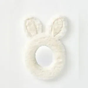 Adorable bunny ear mirror. Soft, plush frame. Perfect for playful decor.