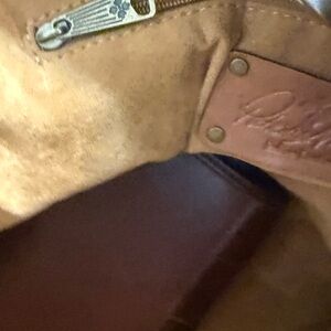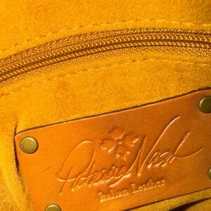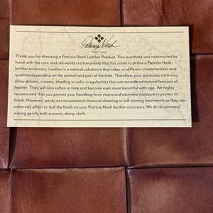 • Exterior label: Patricia Nash logo embossed on a leather patch, stitched on the front.