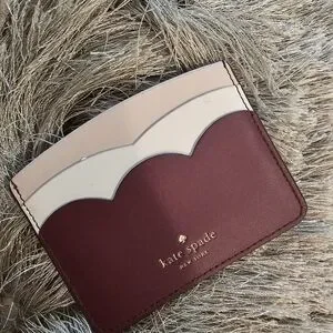 Chic Kate Spade card holder. Maroon and beige design. Perfect for organizing cards.