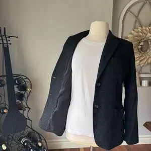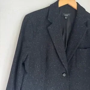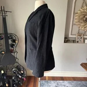 Talbots Women's Black Tweed Wool Blend Two Buttons Blazer Jacket Size 16