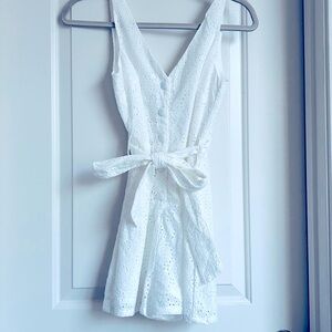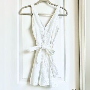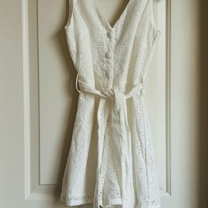 Stunning Gianni Bini White Eyelet Sleeveless Romper button down belt tie super cute and flattering!