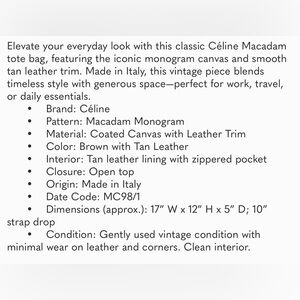 Céline Vintage Brown Leather Macadam Large Tote