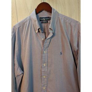 Ralph Lauren Yarmouth Button Front Cotton Shirt Size 17 34/35 Blue Long Sleeve