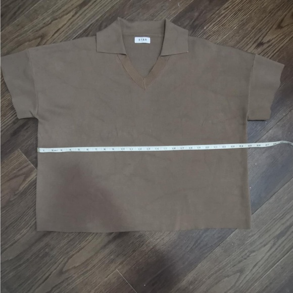 This brand without tag brown polo shirt features a rich, warm hue and a classic collar design. Made from a textured knitted fabric, it offers a comfortable and relaxed fit, perfect for casual outings or a laid-back day at the office.
