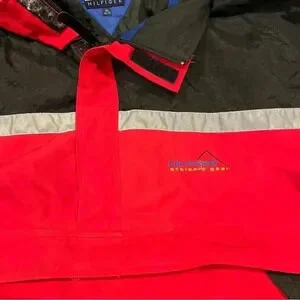 Vintage Tommy Hilfiger 1/4 Zip Pullover Windbreaker. Hilfiger Adventure Gear. Features so many customizable features such as pockets, adjustablewaist, and a hood that zips into the collar. Has some areas of wear seen in photos.