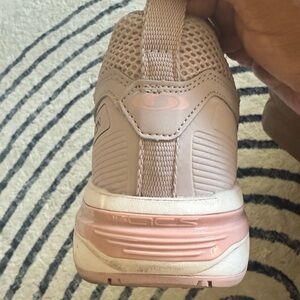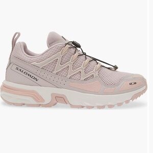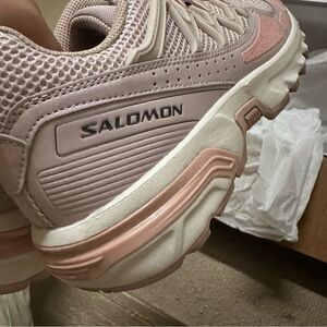 Stylish Salomon sneakers. Light pink mesh upper. Cream accents. Durable sole. Perfect for active wear. Good condition. Worn only once outside.