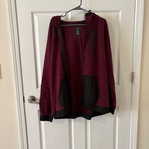 American Eagle full-zip hoodie. Lightweight, comfy, and perfect for layering. Features sleek black pockets + AE graphic for a casual streetwear vibe. Men’s size xx-large