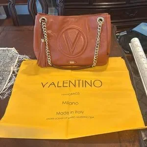 Valentino leather Carmel color Tote Bag with Gold Chain with dust bag