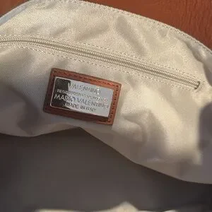 Valentino leather Carmel color Tote Bag with Gold Chain. 2 large hidden pockets on front. One large inside pocket and one regular size inside pocket. Comes with dust bag