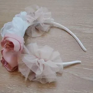 Charming floral hairband in pink and white, perfect for adding a touch of elegance to any outfit.