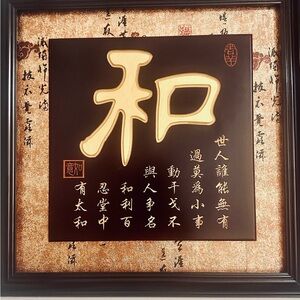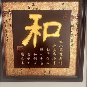 Enhance your space with this elegant gold and brown wall art. The frame is dark brown and in perfect condition. The lettering is leaf gold. Perfect addition in any room. Namaste
