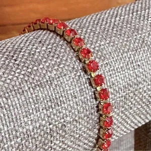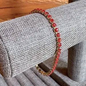 This listing is for one red ruby cz bracelet only! Any other bracelets or jewelry shown in the photos is for reference and styling tips only!