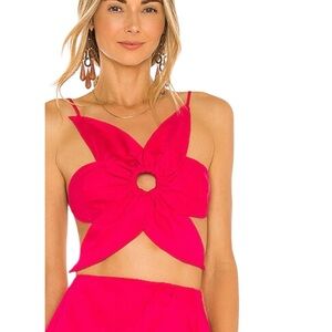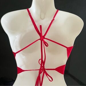 Flower five petal top adjustable straps tie back carnelian red one size
