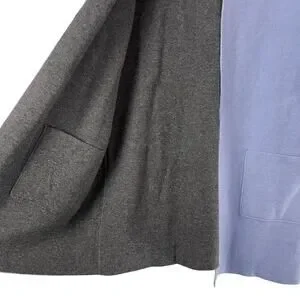 J Jill reversible open front cardigan in womens size Small. Two in one design with blue on one side and gray on the other. Features front patch pockets and rolled cuffs for a versatile layering piece.