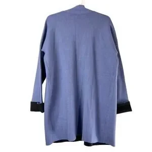 NEW J Jill Reversible Open Front Cardigan Womens Size Small Blue Gray Pockets