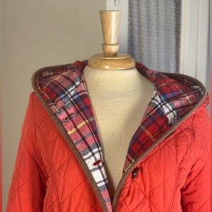 Plastic Island Classic Red Quilted Hooded Barn Jacket with Plaid Lining Size S