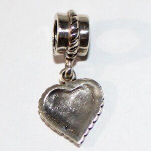 Charm measures 13/16ths of an inch length and 7/16ths of an inch wide across the heart.